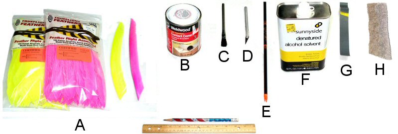 We have found that ordinary fletching glue tends to soften the contact cement and is not recommended.