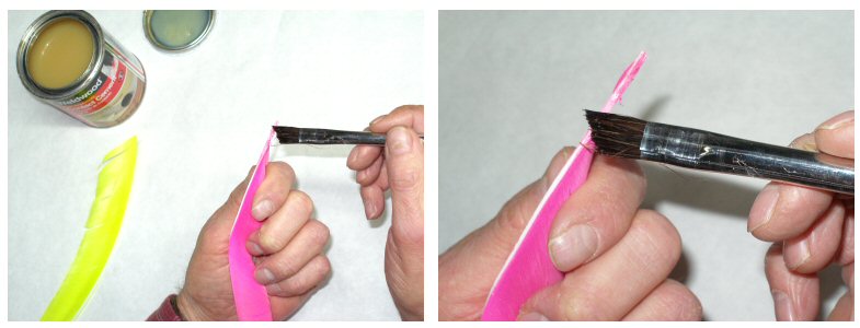 A thin, even coat works best. Remember you will need to attach the feather to the shaft within the next hour or so.