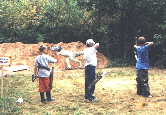 Kids at the Wisconsin Bowhunters Convention practice on "exotic" game.
