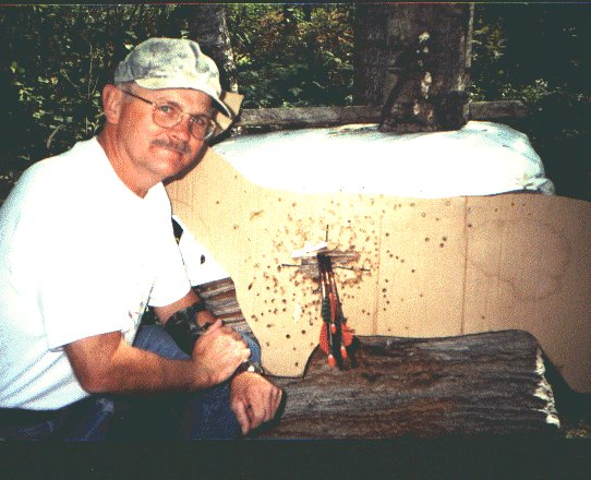The Archery Alley again was a huge success throughout our country. This year we added a little spice to ours by using cardboard silhouettes of deer, bear and turkeys, suspended by the cables which hold the target plates. We also suspended some 2" by 24" long P.V.C. pipe horizontally with a tiny balloon pushed to the front of the pipe and a soup can at the other end. Talk about having fun, the kids had a ball with it. If the kids put their arrow in the tube we called it a "Robin Hood" and they got a free ice cream or pop. We had about 10 kids that were able to accomplish this challenge. Next year I would like to take our Archery Alley to the Department of Natural resources section of the Wisconsin State Fair. Can you just imagine how many new kids we can reach there? Hopefully, next year I'll have a successful story to share with you about that. ![]()