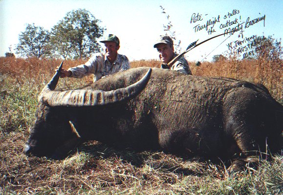 Monty Browning has taken another world record animal. This time it's a South Pacific Water Buffalo, in Northern Australia. Monty reports that the 2000 pound bull was killed with a single arrow - and that the arrow passed completely through the animal.