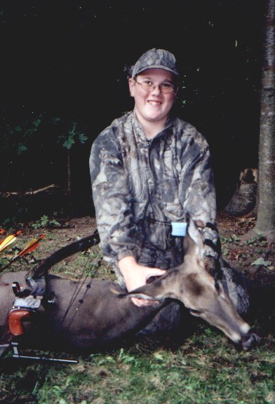 Good news at the Link's cabin! My Son and best Friend, Jacob, harvested his first Whitetail Deer, a doe, with his Bow and Arrow. He made a good shot and was rewarded with a good blood trail which was a blessing as she jumped a creek and headed into a tag alder marsh. When we found her about 75 yards away, needless to say there were two very happy bowhunters in Northern Wisconsin. Finally my best buddy got blood under his fingernails!