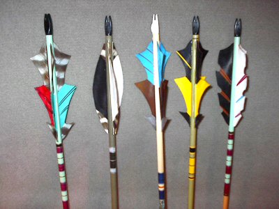 One of the great things about feather fletching (aside from it’s performance ) is that there are so many possible variations possible to make unique and interesting shapes, colors, and combinations on an arrow. Butch White has taken “unique” to the extreme... by custom making some of the wildest looking arrows we’ve ever seen.